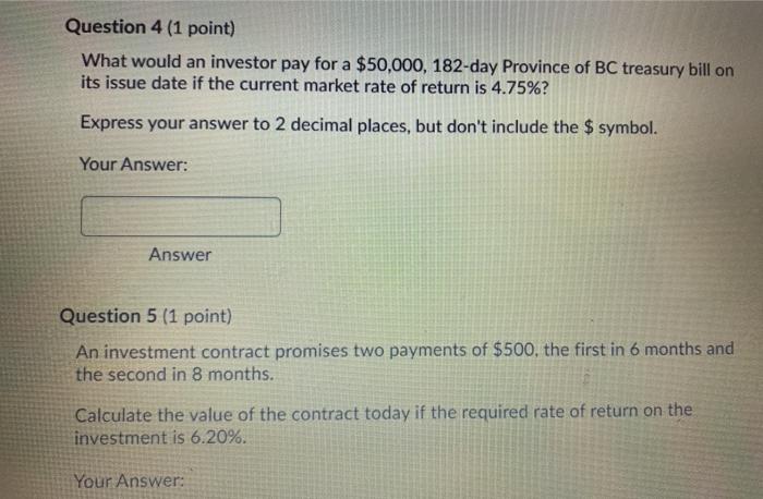 Solved Question 4 1 Point What Would An Investor Pay For A Chegg Com